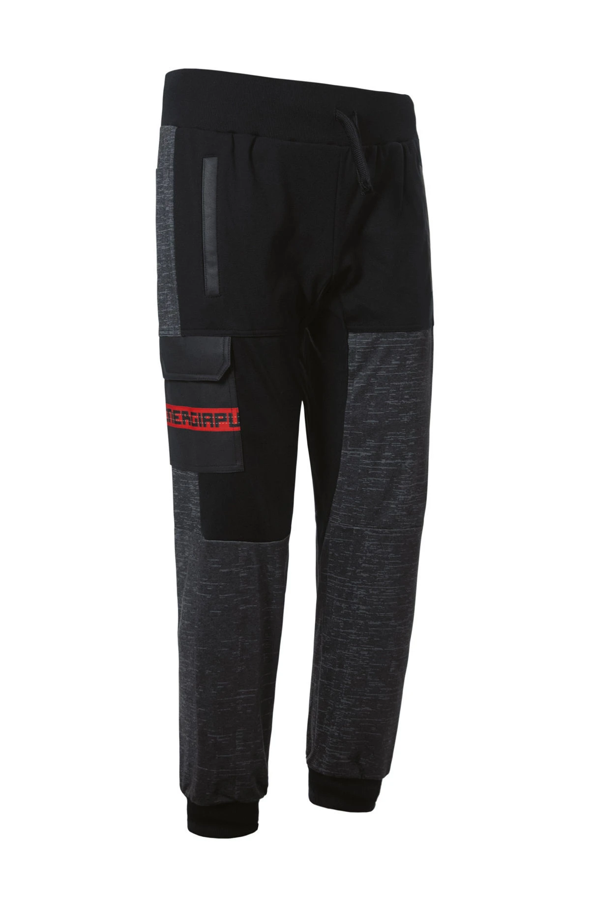 Long pant in polyester bielastic fleece fabric with inserts of leather.